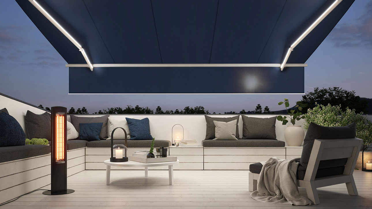 Der Klassiker für große Flächen. Die Tuchkassette in elegantem Design passt auf jede Terrasse.